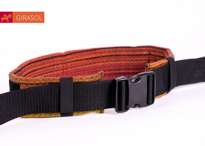 Mit Hilfe unseres Schnallenhüftgurtes kannst Du mit wenigen Handgriffen den MySol® von einem Mei Tai in eine Halfbuckle Trage verwandeln. Ebenso kannst Du den Schnallenhüftgurt für unseren WrapMysol verwenden.