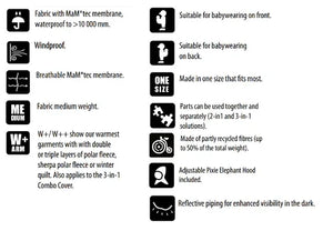 Das Tragecover ersetzt keine Babytrage, sondern dient als Wetterschutz über einer Tragehilfe oder einem Tragetuch.
