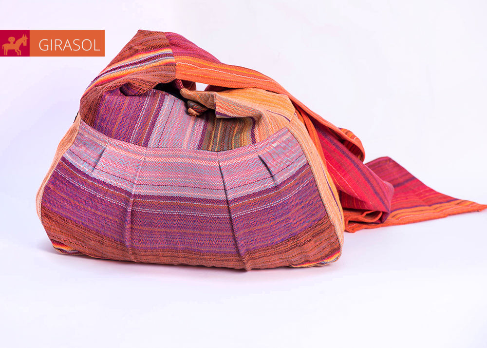 Wir von Girasol legen Wert auf Handarbeit und Qualität. Vom Pflücken der Baumwolle über das Färben per Hand mit umweltfreundlichen Farben hin zum Weben – jede Faser Deiner Babytasche hat bereits einige liebevolle Hände durchlaufen.
