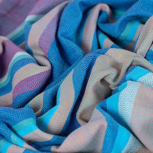 Unsere Tragetücher werden in vier Bindungen gewebt: Kreuzköper, Diamantköper, Honeycomb und Fischgrat. Alle Gewebearten besitzen aufgrund ihrer Diagonalelastizität wunderbare Tragetucheigenschaften. Die Tragetuchmitte ist mit einem eingenähten Schildchen markiert, die Enden sind abgeschrägt und Kanten komfortabel doppelt umnäht.